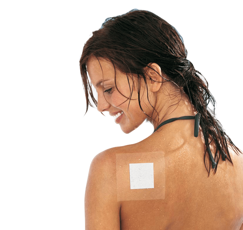Wasserdichte vollflächige Verbandfixierung, mit der ohne zusätzlichen Schutz oder Verbandwechsel duschen und baden ermöglicht wird.