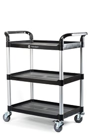 Extrem leicht durch Alu/Kunststoff-Kombination. Die drei schwarzen Kunststoff-Etagenhaben eine glatte und somit leicht zu reinigende Oberfläche.