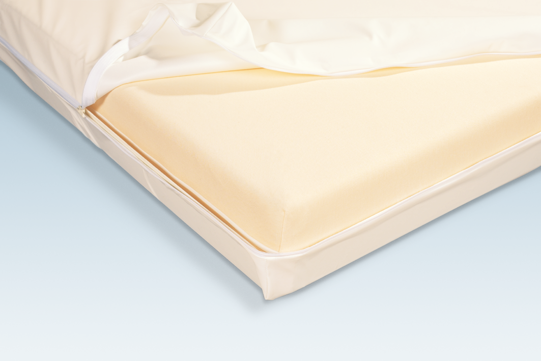 Hochwertiger, elasticher Hygienebezug aus polyurethankaschiertem Jersey. Die mikrofeine, atmungsaktive Beschichtung garantiert ein angenehmes Klima und einen hohen Liegekomfort.