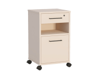2er Set Nachtschränke, rollbar mit abschließbarem Schubkasten, offenem Fach und großem Schubkasten.