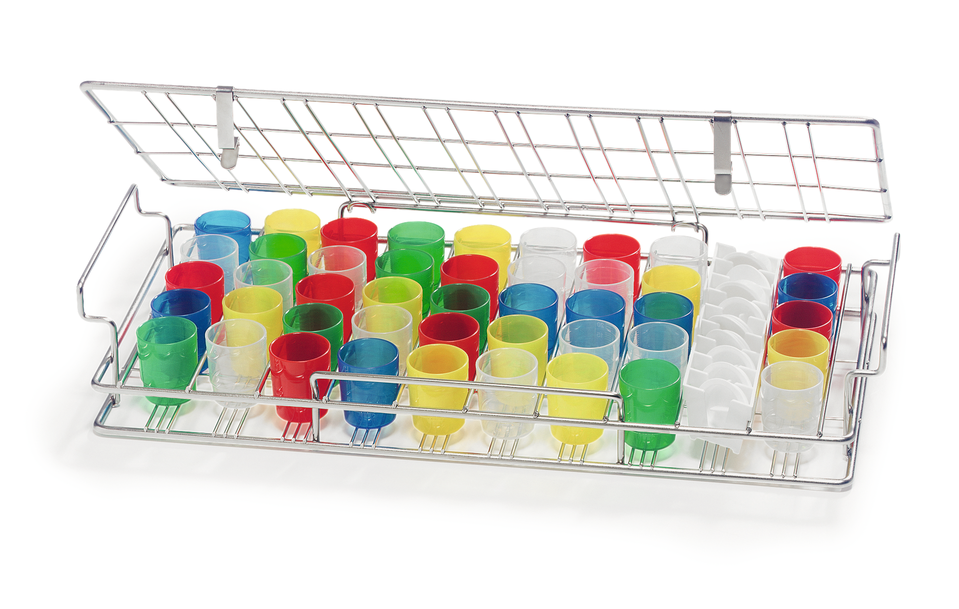 Spülkörbe zur maschinellen Reinigung von Bechern, Becherdeckeln und Tagesdispensern.