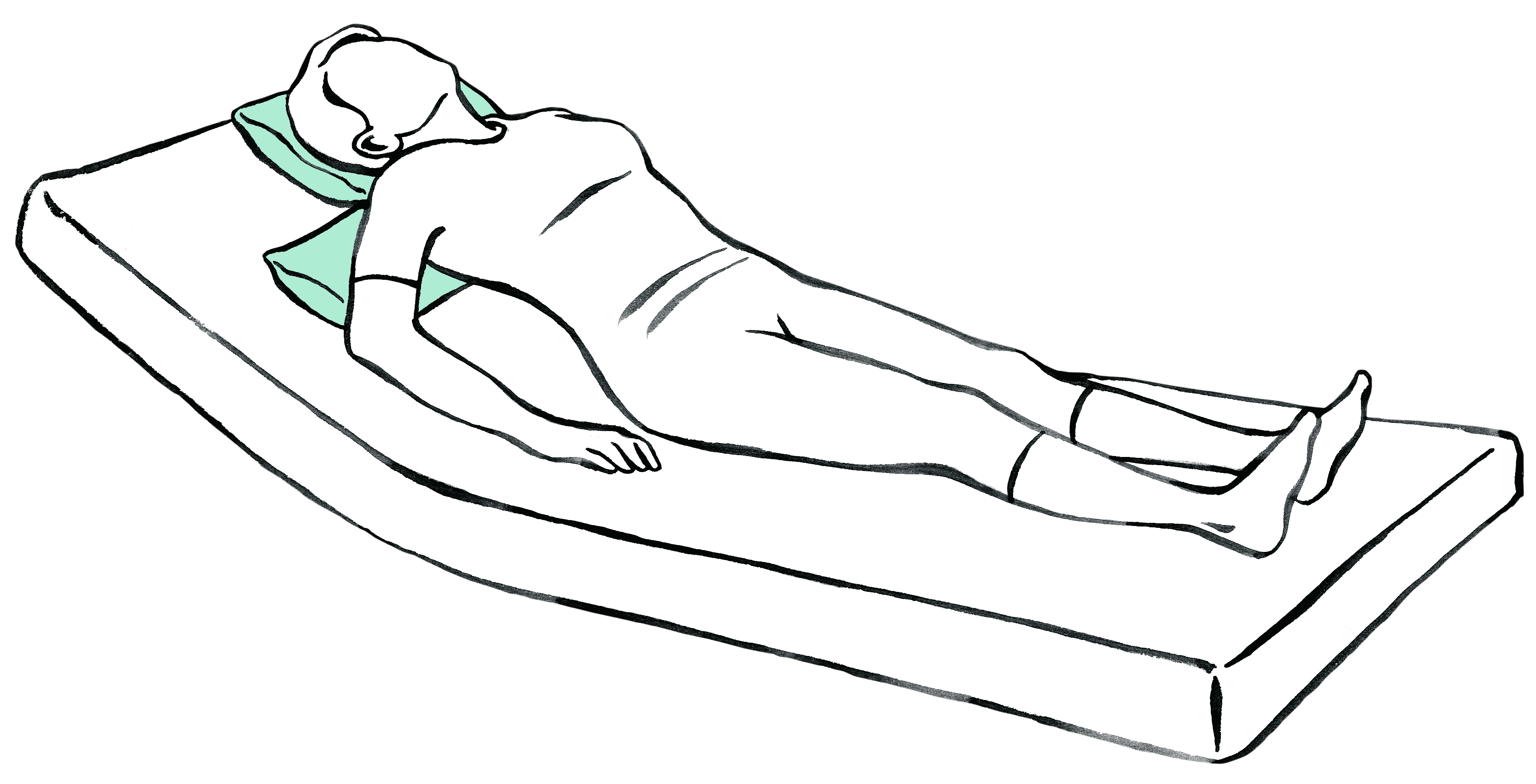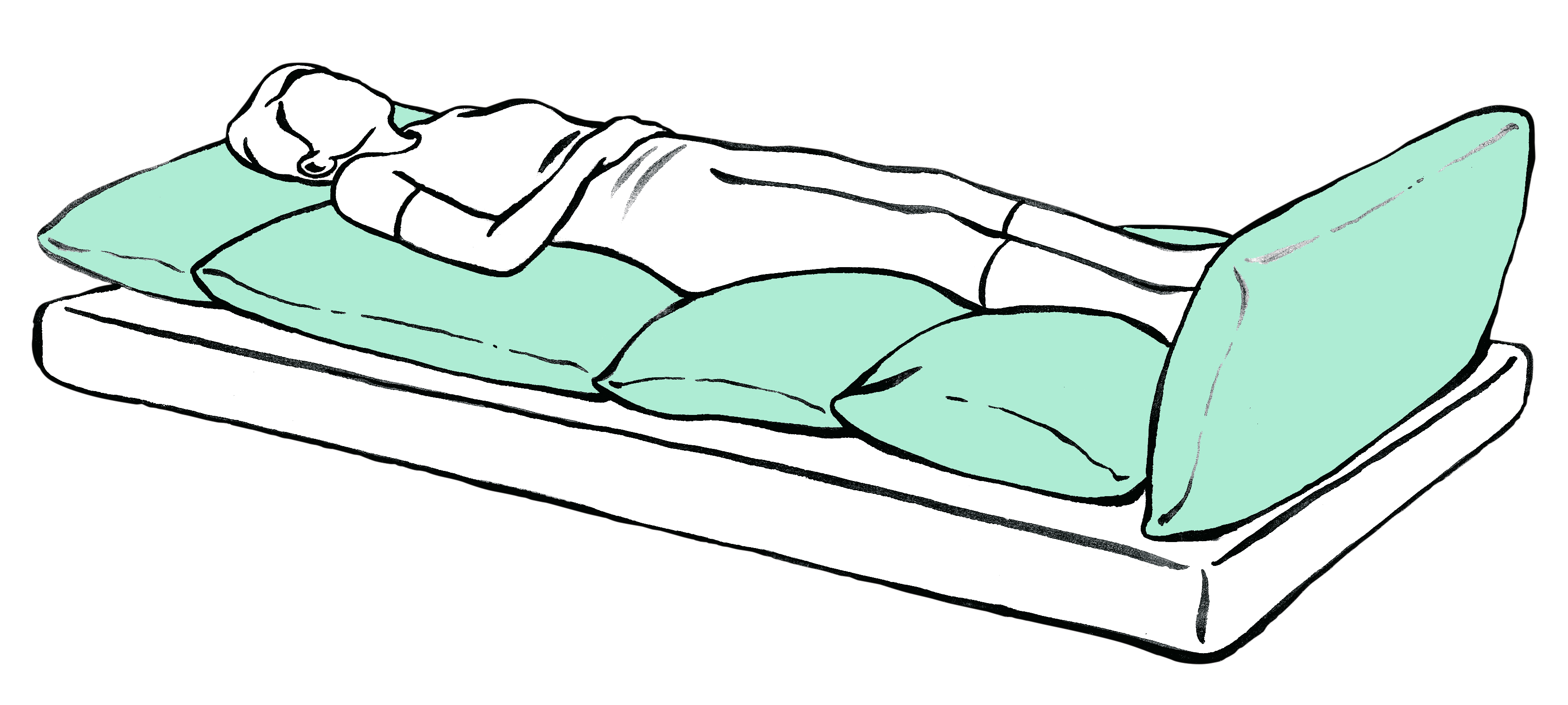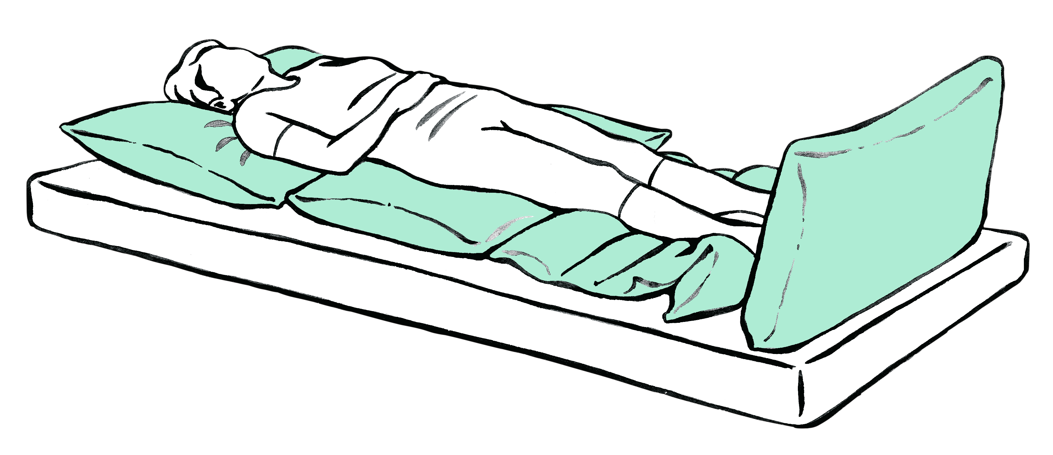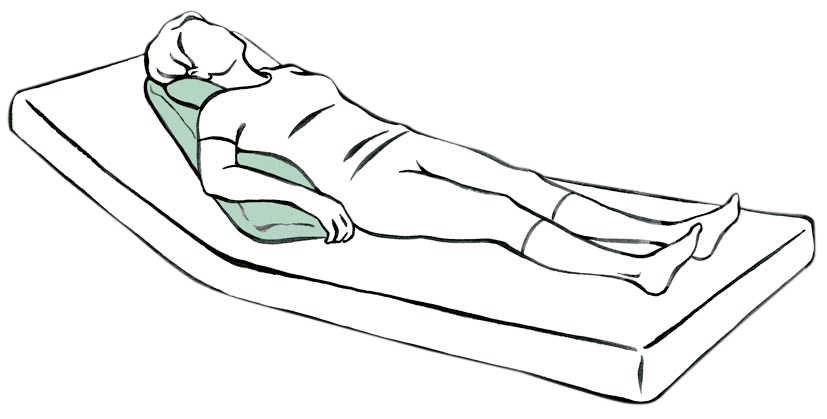Set bestehend aus zwei Rhombo-med® Lagerungskissen 25 x 80 cm, die zeitlich begrenzt in A-, V- oder T-Form unter den Oberkörper platziert werden.